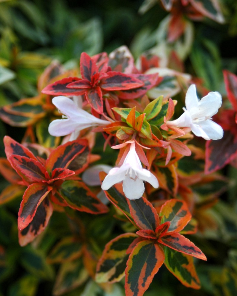 The Icon™ series is a stunning addition to the Southern Living Plant Collection by Plant Haven, and the vibrant beauty of 'Kaleidoscope' is an attractive example. This hardy shrub exhibits exceptional resistance to drought, frost, deer, and rabbits, making it as tough as it is eye-catching. The brilliant red stems pair perfectly with the variegated green and yellow foliage to create a bold contrast for the petite, white flowers that begin to emerge in the spring. As the weather cools in the fall, its foliage transforms from green and yellow to golden peach and fiery red, providing a dynamic display of seasonal color.